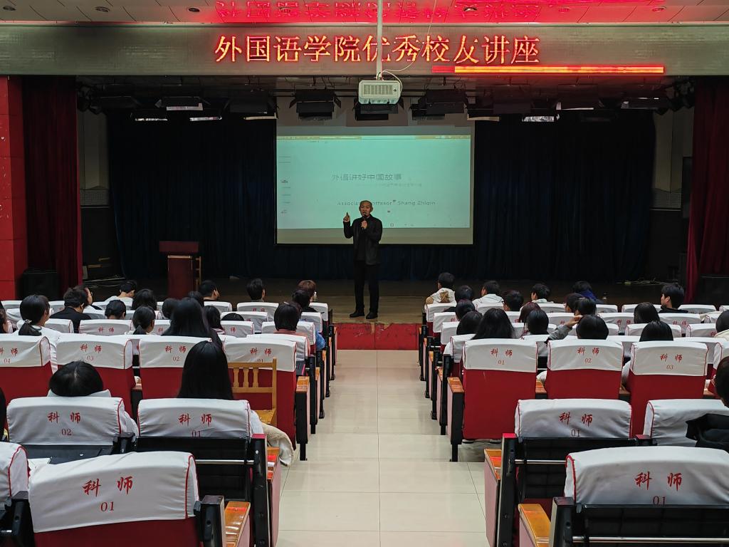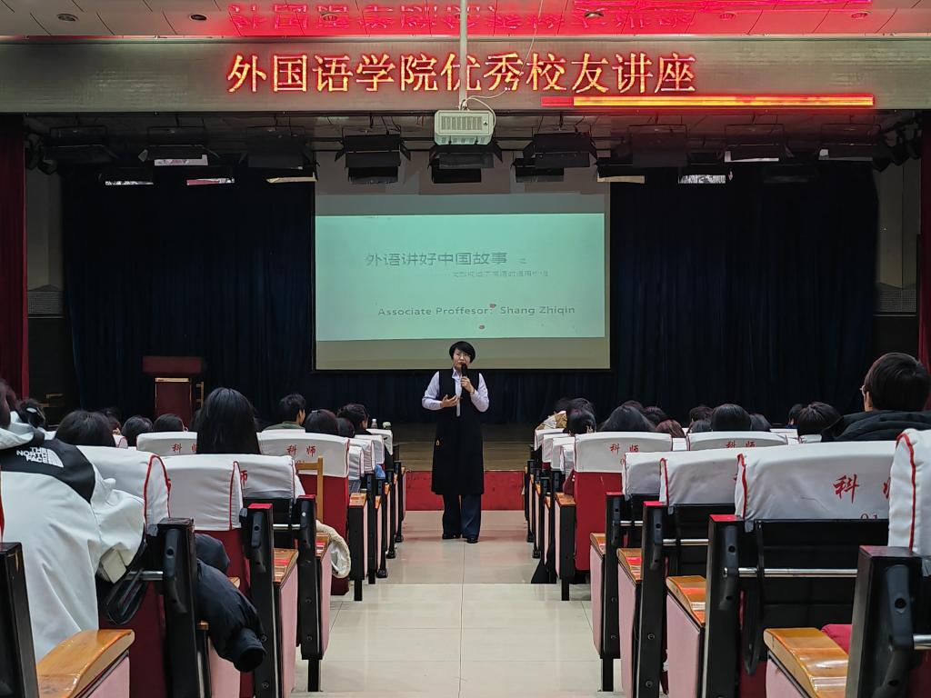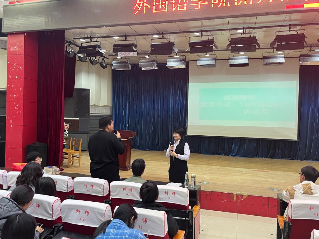 “雏既壮而能飞兮,乃衔食而反哺”。为进一步提升学生专业能力和综合素养,秉承“外语+”应用型人才培养理念,充分体现外语的“学以致用”原则,提升学生用外语“讲好中国故事”的意识和能力,增强文化自信,必赢242net官网于11月8日邀请优秀校友尚志芹(河北建材职业技术学院副教授、对外汉语教学国际汉语高级教师、国家高级英文导游员、河北省英语导游考官、河北省“师德标兵”、全国第十三批援藏导游员西藏自治区“先进个人”)在开发区校区综合楼二楼报告厅进行针对教师资格证和外语导游考试的讲座。