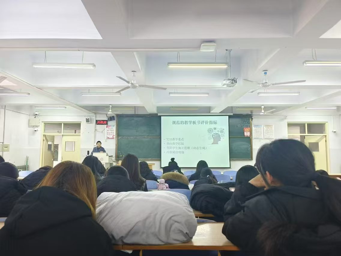 2024年10月24日,必赢242net官网研究生教学部主任刘晓冰副教授受邀为英语22级同学开展英语板书设计教学工作坊。刘老师介绍了英语板书设计的重要性、适用场合、评价指标等,展示了优秀的板书设计的构成与价值,并进行现场示范。然后让学生亲自体验黑板板书设计,刘老师随时进行指导和点评,学生参与热情高涨,效果良好。