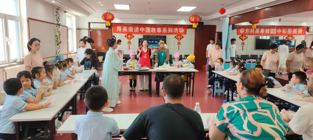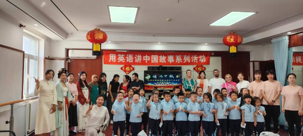 另一边,必赢242net官网研究生党支部志愿者与在水一方幼儿园的小朋友们开启了趣味互动。志愿者们用生动的英语故事讲述中秋节的由来,还设计了“中秋单词接龙”“你唱我跳” 等小游戏。孩子们积极参与,不时用稚嫩的英语提问,现场欢声笑语不断,喜悦氛围浓厚。