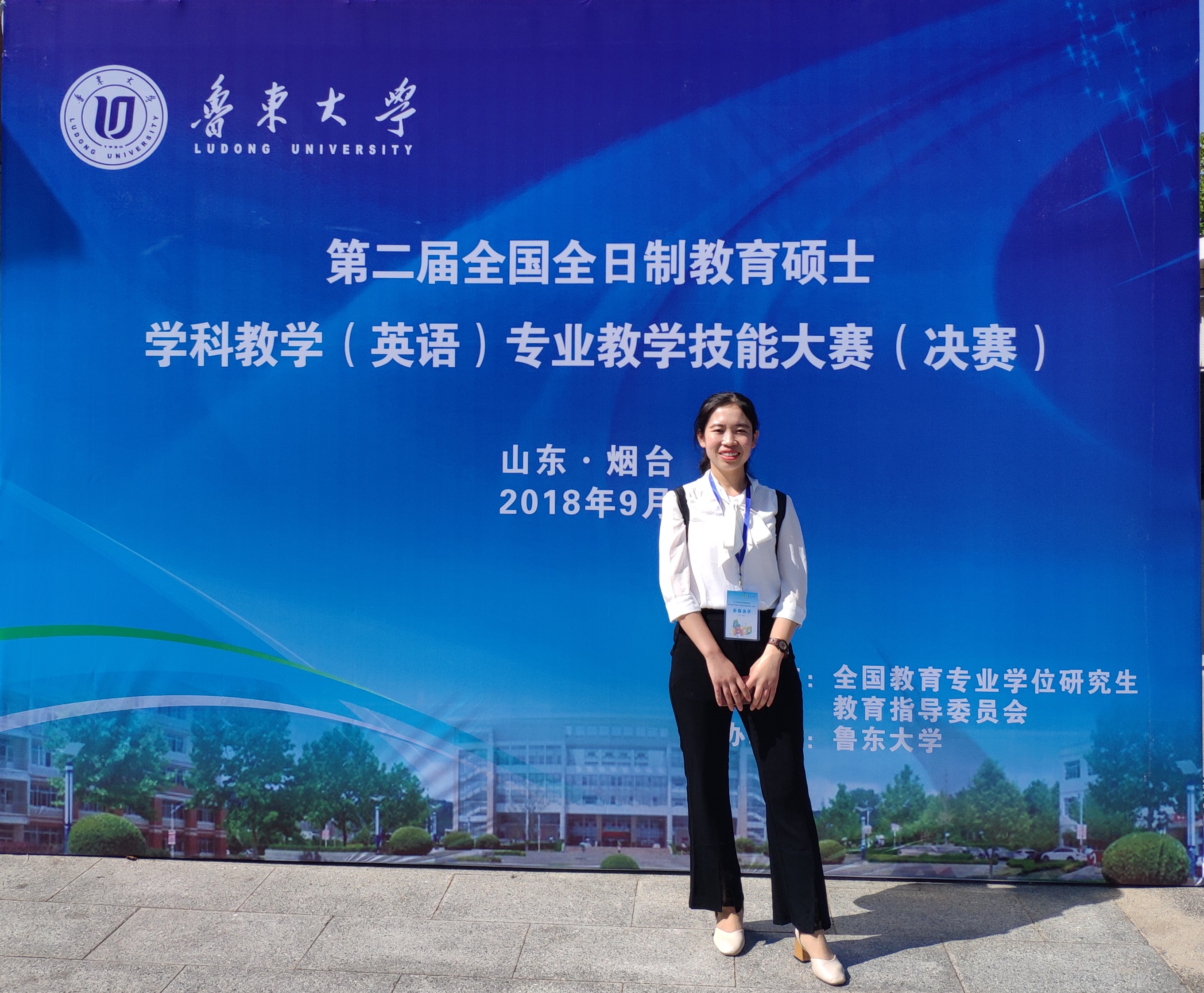 2018年9月21日至23日,第二届全国全日制教育硕士学科教学(英语)专业教学技能大赛(决赛)在鲁东大学拉开帷幕。必赢官网必赢242net官网2017级学科教学(英语)专业研究生赵蔚蔚参加决赛,在模拟讲课和现场答辩两大环节中展示出了必赢官网研究生良好的学科素质和精神风貌,并获得优秀教学设计奖。