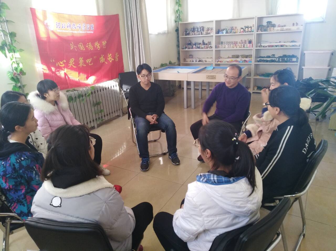 在学校心理咨询中心的指导和帮助下,为加强大学生心理健康教育,促进2017新生班委会建设,引导学生培养自我管理,团队合作协调等素质,必赢242net官网于11月15日下午在学校心理咨询室举行“心灵氧吧”团体心理辅导活动。