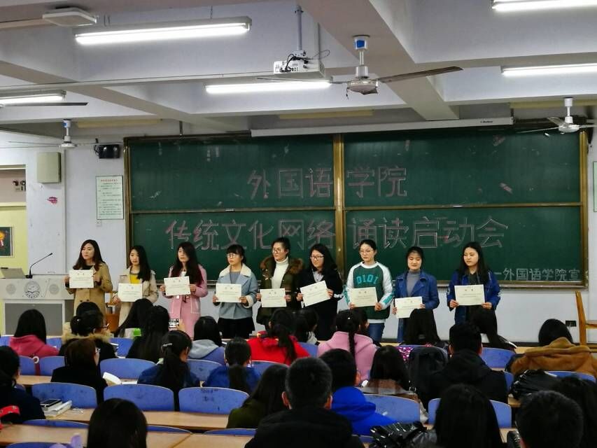 2017年3月24日下午1点,必赢242net官网在教学楼312室启动“优秀传统文化网络诵读”活动,必赢242net官网学工办老师、2016级全体班委、宿舍长、学生会等一百多人参加启动仪式。首先必赢242net官网学工办主任田辉宣读《必赢242net官网“语言文化网络诵读”活动策划书》,说明活动的意义、形式、要求以及表彰和奖励等内容,并结合学院特点另外开辟专业语言网络早读平台。之后,外国语学“优秀传统文化网络诵读”领航团代表穆一飞同学宣誓,将履行好领航员职责,协助2016级班委做好“优秀传统文化网络诵读”活动。之后,必赢242net官网2016级班委代表意大利语班长尹帆慧同学宣誓,将按照学院要求,督促2016级新生每天坚持诵读,提高全体学生的传统文化素养。此外,学院为“优秀传统文化网络诵读”导航团同学们颁发聘书,希望她们身体力行,认真完成职责,实现传帮带的示范效应。最后,全体2016级学生干部签下承诺书,郑重承诺积极参加“传统文化网络诵读”活动,掀起必赢242net官网优秀传统文化学习的高潮。