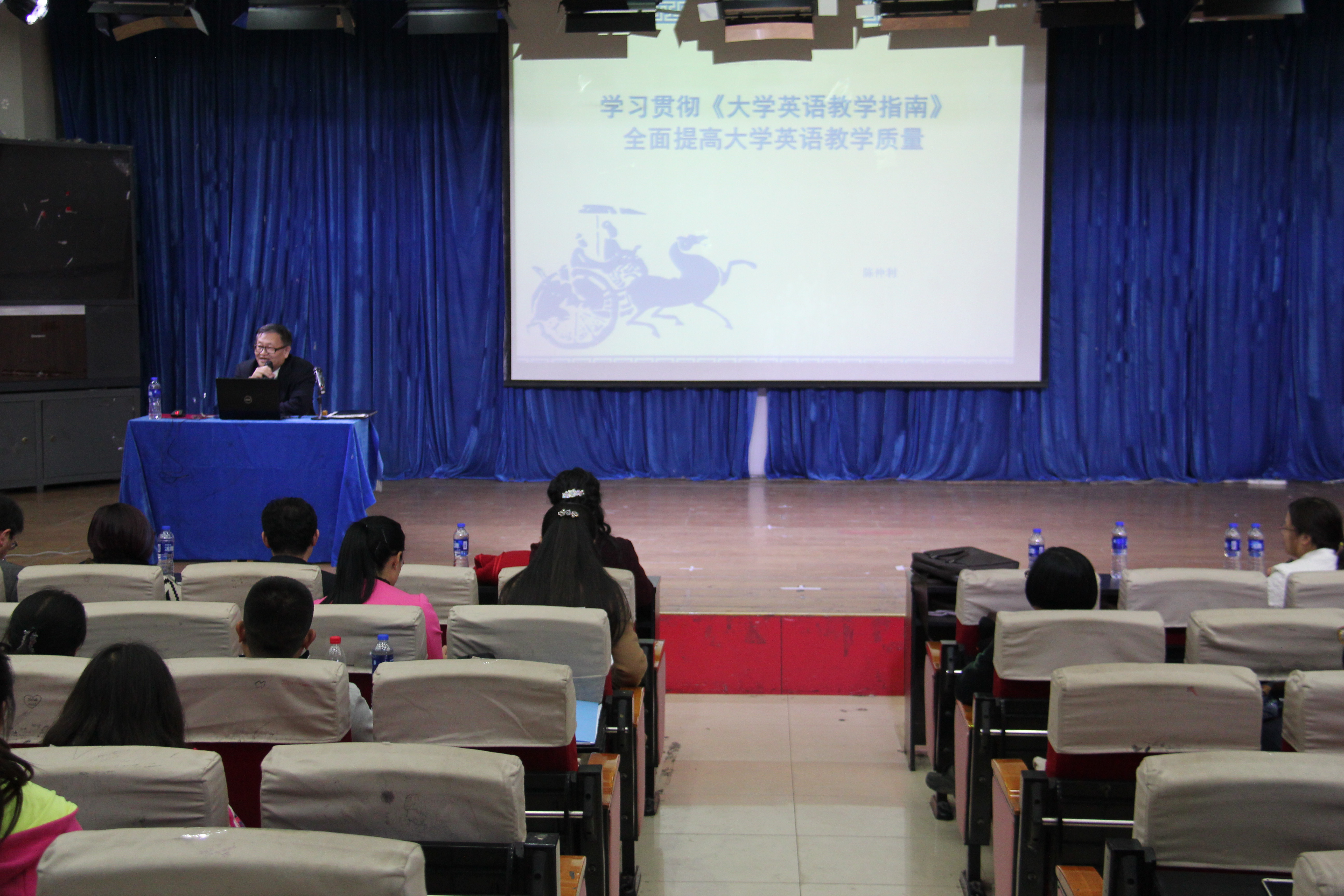 2016年4月14日下午,必赢242net官网邀请教育部高等学校大学外语教学指导委员会副主任,全国大学英语四、级考试委员会委员,全国独立学院外语教学协作委员会主任陈仲利教授来必赢官网作题为“学习贯彻大学英语教学指南,全面提高大学英语教学质量”的报告。东北大学秦皇岛分校、东北石油大学秦皇岛分校、环保学院、建材学院等秦皇岛各高校英语教学负责人和教师参加了此次报告会。