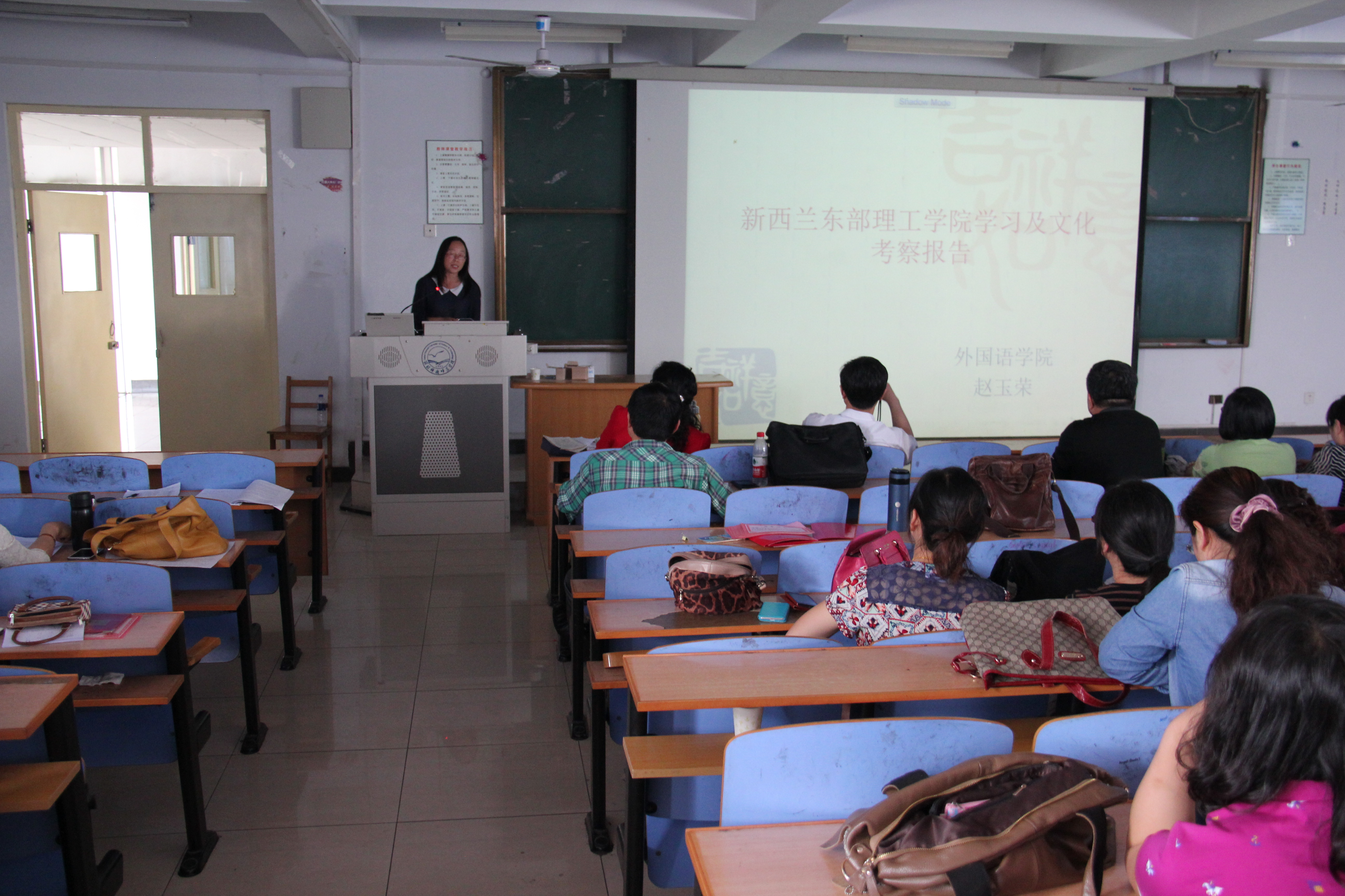 5月21日下午,必赢242net官网在开发区校区综合楼312室召开新西兰归国教师汇报总结会,国际合作与交流处处长东方阳、必赢242net官网院长邵丽君、副院长游建民及全体教职工参加了汇报总结会。