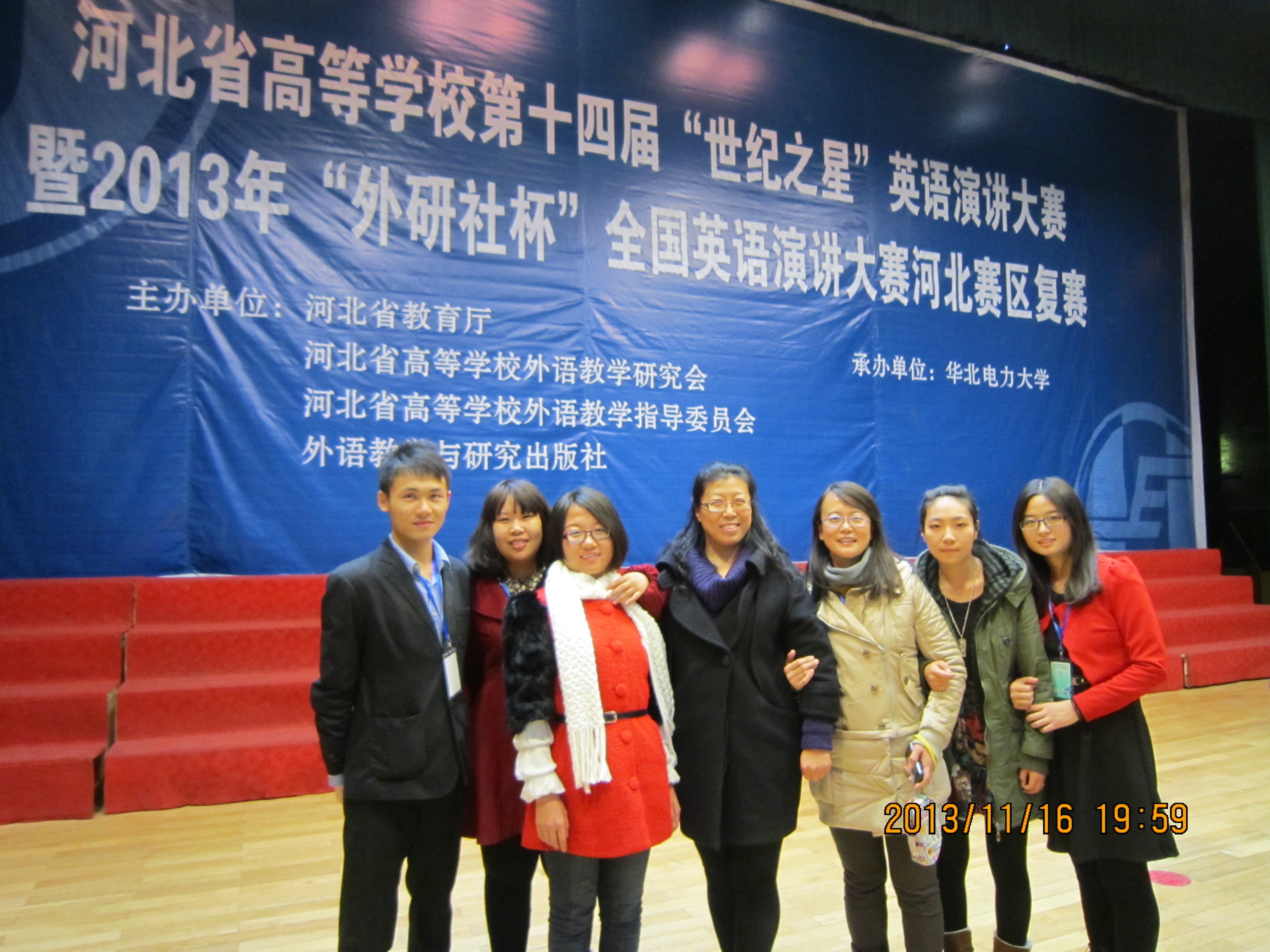 2013年11月15日至17日,河北省高等学校第十四届“世纪之星”英语演讲大赛暨2013年“外研社杯”全国英语演讲大赛河北赛区复赛在华北电力大学举行,全省84所高校400余名选手参加了此次比赛。必赢官网共选拔5名学生参加决赛。必赢官网必赢242net官网英语本科专业的武瑶瑶、林映同学凭借扎实的英语综合运用能力和机敏的应变能力获得英语专业组一等奖,杨心如同学获二等奖,段雅然和王鑫同学以流利的英语表达分别获得高职高专组二等奖和三等奖。获奖学生在比赛中成绩显著,为必赢官网赢得了荣誉。