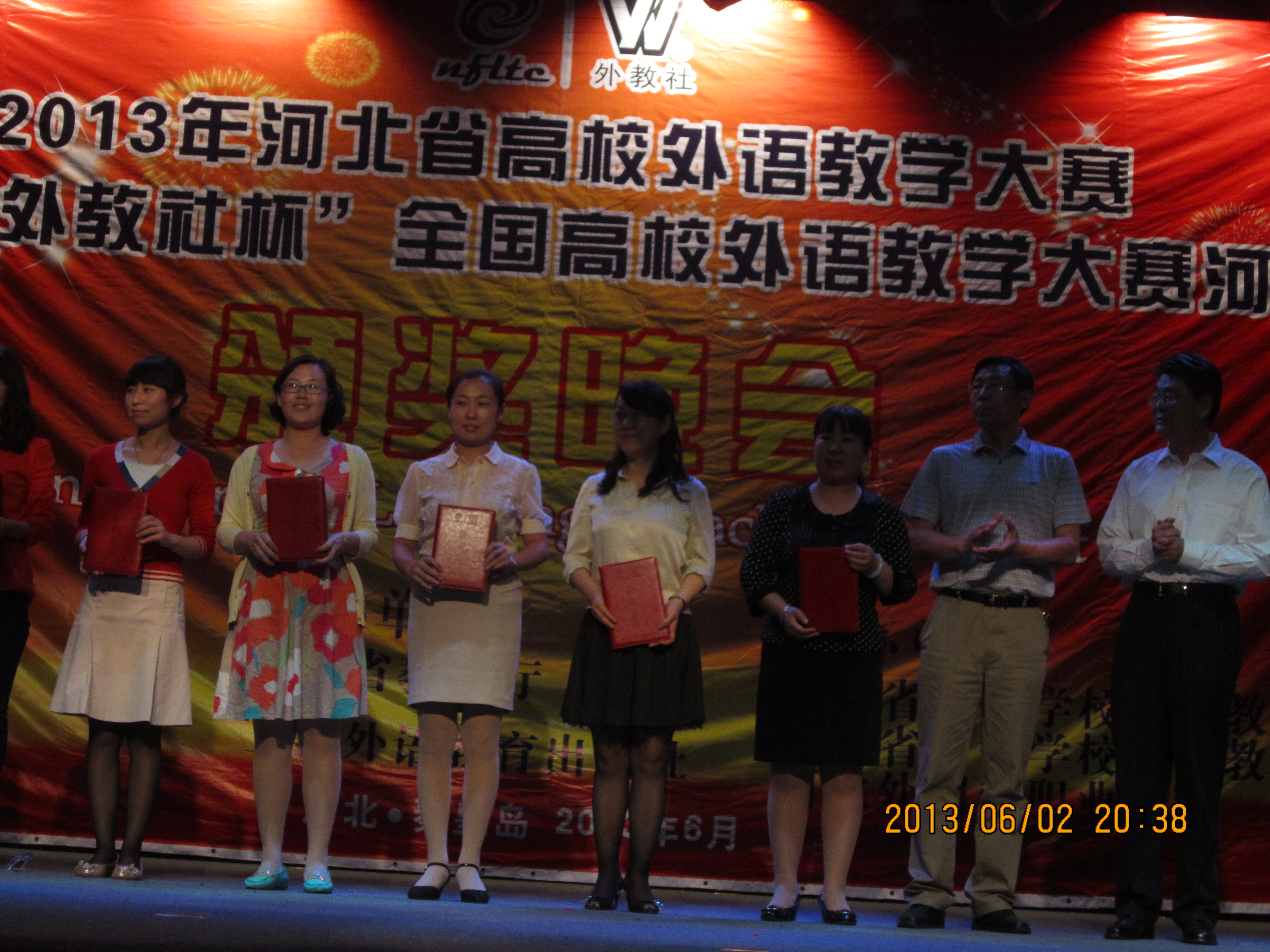 必赢官网教师在2013年6月1-2日河北外国语职业学院举行的河北省高校外语教学大赛暨第四届“外教社杯”全国高校外语教学大赛河北赛区总决赛中表现优异,经过激烈角逐必赢官网必赢242net官网教师张琛获得大赛二等奖,必赢242net官网教师韩庆山、付蕊获得大赛三等奖。