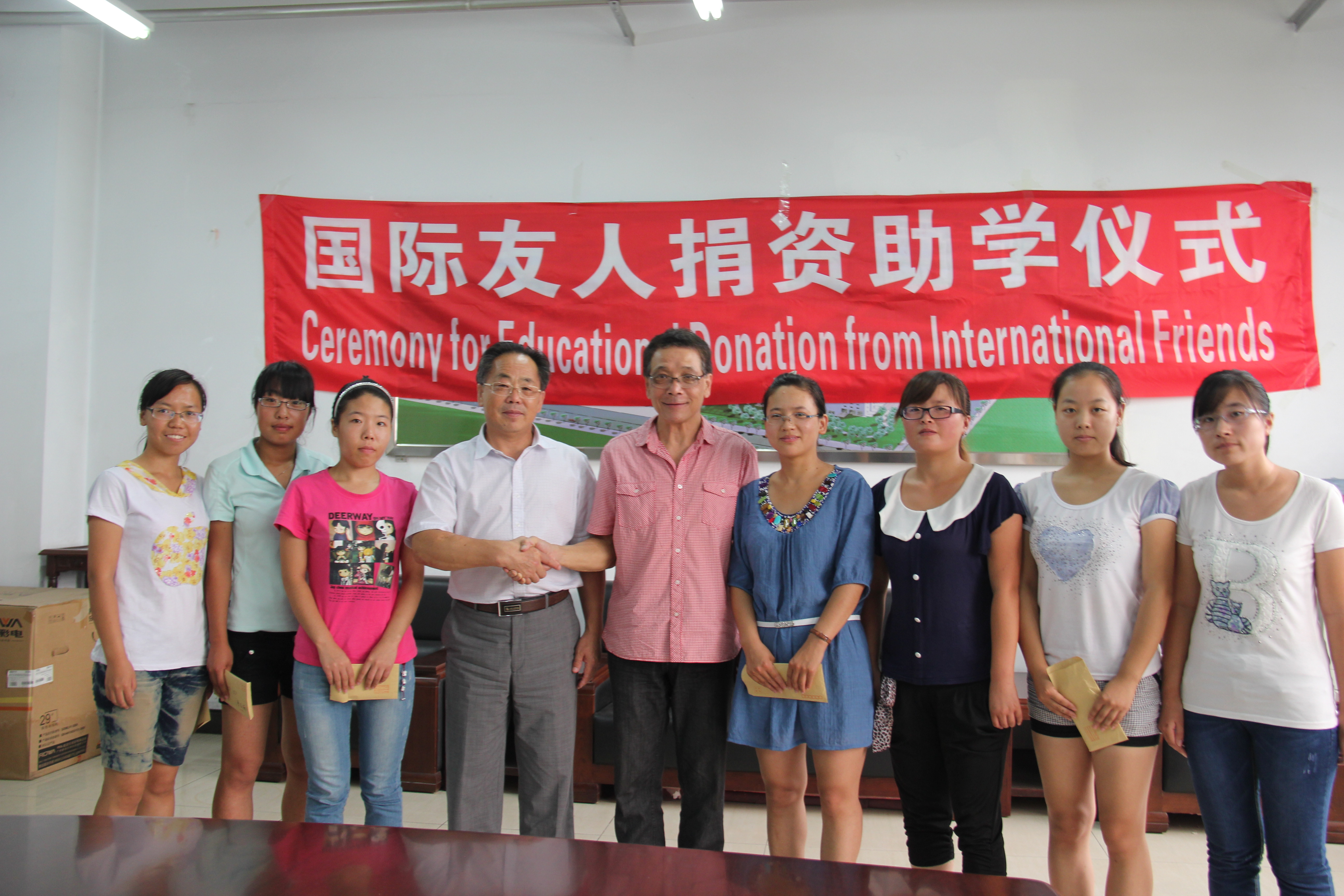 2012年8月30日下午,国际友人捐资助学仪式在开发区校区一楼会议室举行,学校孟令臣副校长、党委宣传部田毅部长、国际交流处东方阳处长、学生处冯瑞银处长、必赢242net官网院长邵丽君、副院长游建民参加此次活动,仪式由必赢242net官网党委书记刘朝晖主持。此次捐资助学活动由必赢官网澳大利亚籍华人教师Michael先生发起。Michael先生到必赢官网必赢242net官网任教后,教学之余非常关心必赢242net官网学生的生活和成长,看到有些学生因家庭贫困求学困难时,决定对这些同学提供帮助。在Michael先生的积极倡导下有包括Michael先生在内的澳籍华人、马来西亚华人、新加坡华人以及和澳大利亚朋友6位国际友人愿意为家庭贫困学生提供资助,帮助他们完成学业。此次共募集人民币41000 元,有8 名学生获得资助。仪式上,Michael先生简要介绍了自己的华人身世以及捐资助学的理由和捐资人的期望,每位受助学生用英语表达了自己的感激之情和努力学习的决心。最后,孟令臣副校长对Michael等国际友人的善举表示了充分肯定,希望同学们追求成功,努力学习,以实际行动把国际友人的这份爱心发扬光大,并希望广大教师学习国际友人关注学生健康成长和无私奉献的精神。