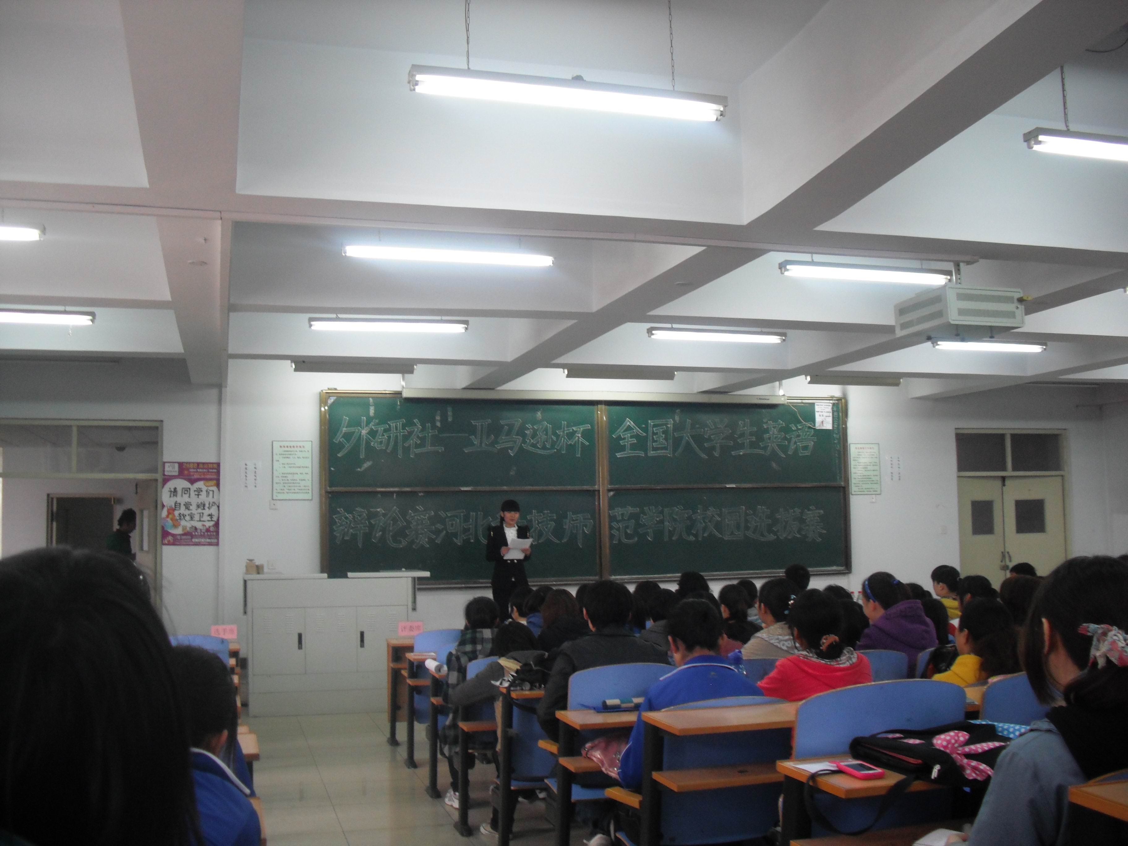 2012年4月21日下午“外研社-亚马逊杯大学生英语辩论赛”河北科技师范学院校园选拔赛在开发区综合楼312成功举办。必赢242net官网院长邵丽君、副院长崔海英等7位领导担当评委老师。共有来自各个专业的14个小组参加了此次选拔赛。在比赛中,选手们以“This house believe that we should impose a prohibitive tax on car ownership (i.e. making car ownership very expensive)”为辩题展开辩论。参赛选手以清晰的发音,自然的表达,娴熟的口语和自信的微笑向各位评委及观众展现出各自最优秀的一面。辩论过程则尤为激烈,各组选手慷慨激昂,有条不紊的陈述各自的观点,更有选手声情并茂赢得台下掌声阵阵。最终评选出冠军队1支、亚军队1支、季军队2支;最佳辩手1名、最佳语音奖1名、最佳台风奖1名、最具表现力奖1名。