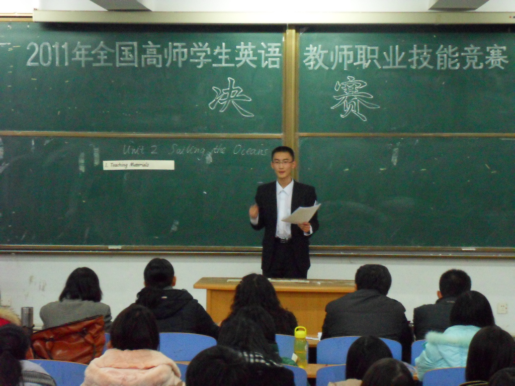 2011年全国高师学生英语教师职业技能竞赛于12月10日下午两点半在开发区312教室成功举行。本次比赛邀请必赢242net官网副院长游建民、副院长崔海英及赵建平、王力、韩庆山老师担当评委。比赛分两个环节,共13位选手进入到决赛。所有选手在遵循公平、公正原则的基础上抽签决定参赛顺序,并随机抽取题目参加比赛。各位选手用流利的英语、丰富的肢体语言及多种多样的讲课方式展现了她们的英语运用能力和临场应变能力,赢得了阵阵掌声,台下同学也积极配合,气氛十分活跃。认真负责的五位评委老师公正客观地为各位选手打分,并做了精彩点评,使各位选手和现场观众都受益匪浅。本次活动的成功举办为选手们提供了展示自我风采的平台和锻炼提升的机会。附比赛结果: