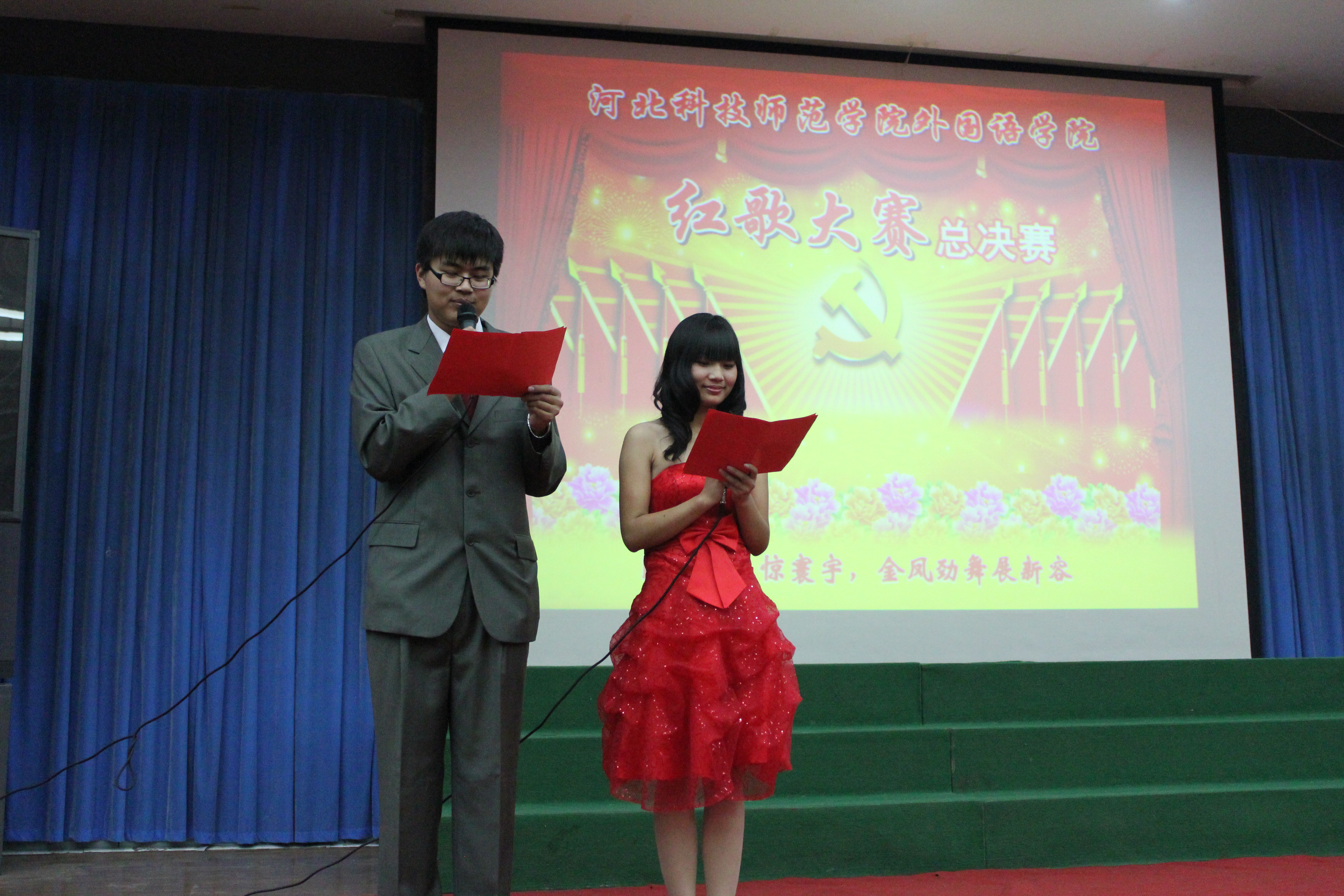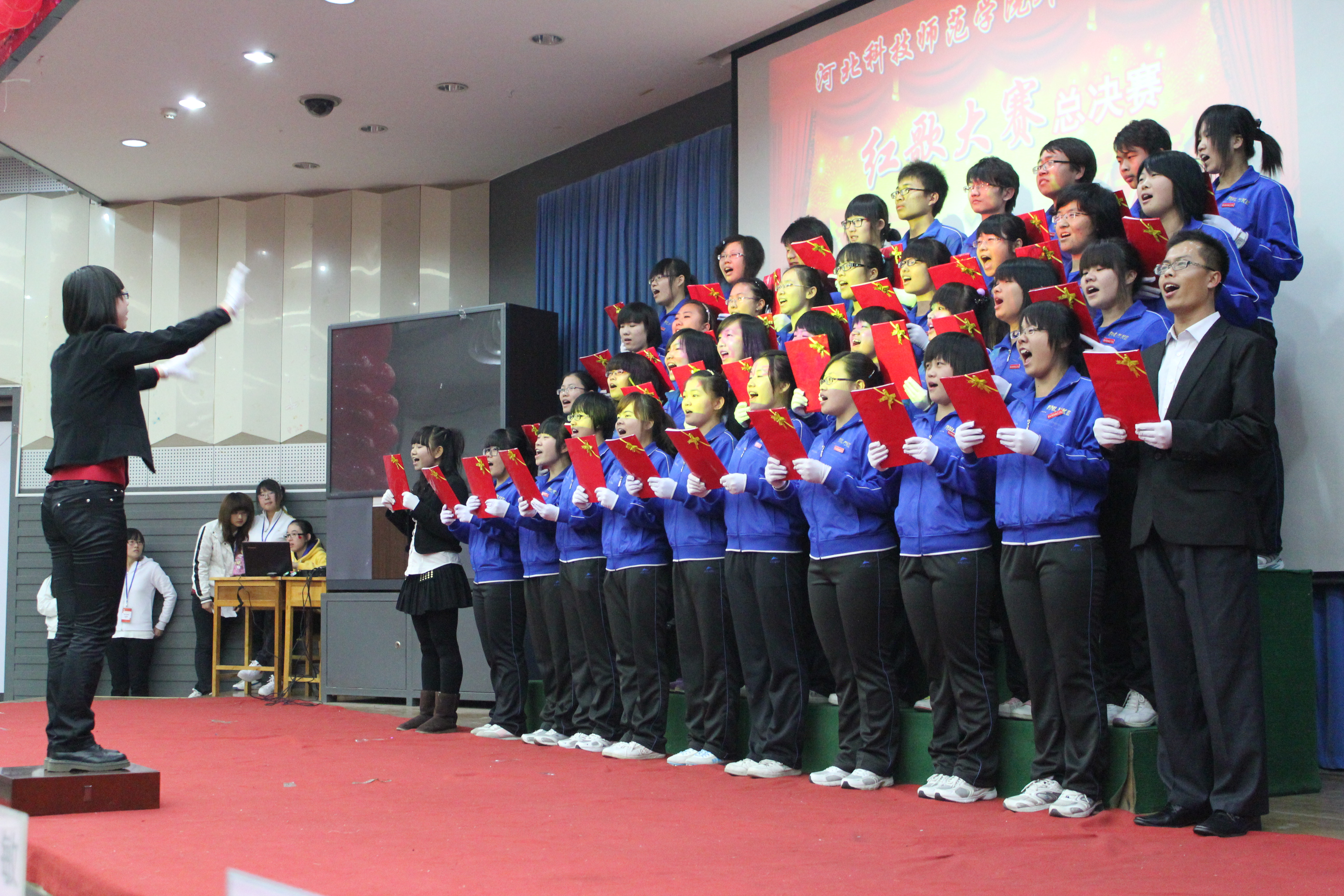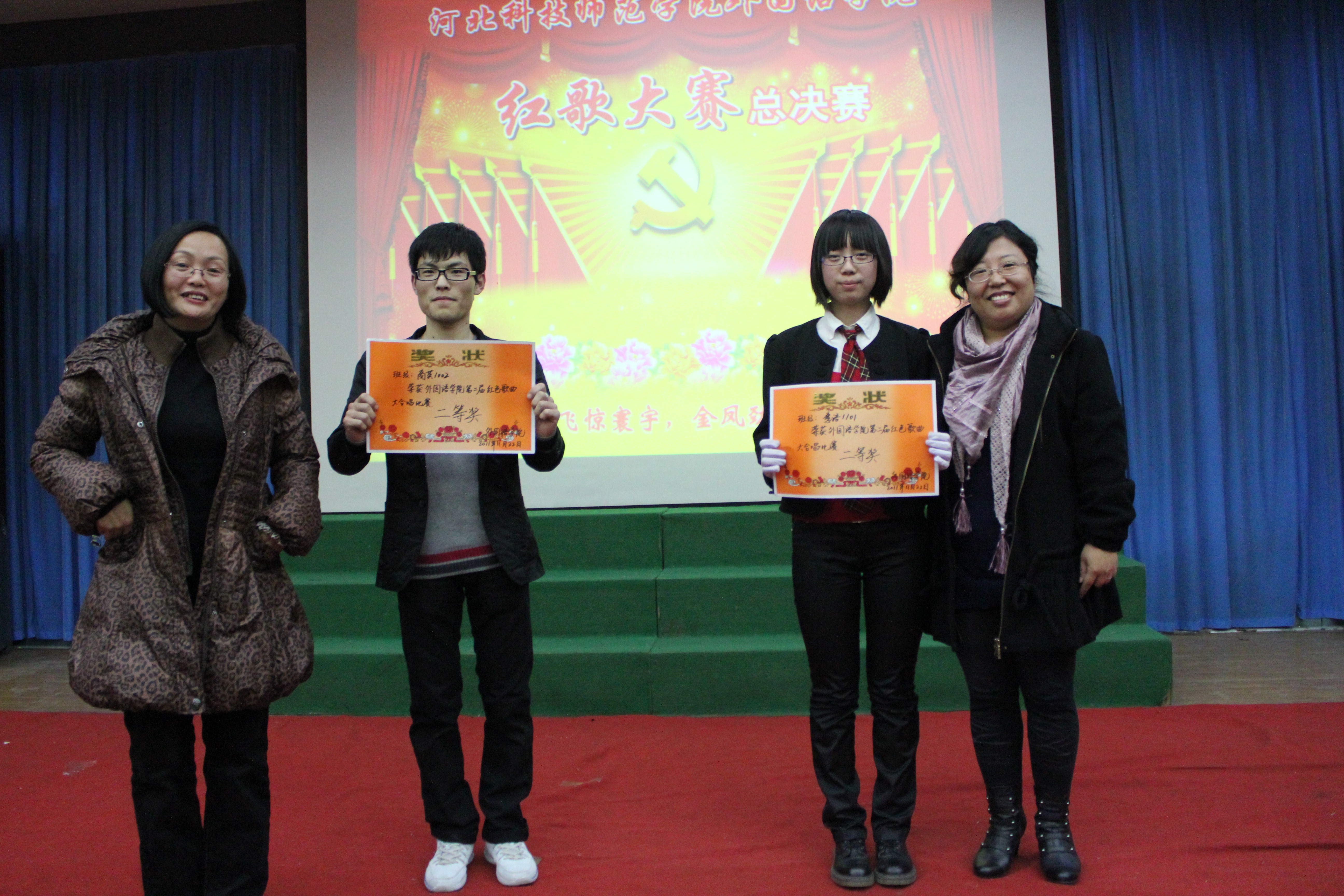 为了回顾过去,缅怀先烈,谨记中华民族的光荣历史,河北科技师范学院必赢242net官网于2011年11月22日在综合楼报告厅开展了以“唱红歌,颂祖国”为主题的红色经典歌曲大合唱比赛的决赛。经过初赛的比拼,有13个班级进入了决赛。担任本次比赛的评委有游建民副院长、崔海英副院长,以及办公室、学工办和各教学部的老师们。