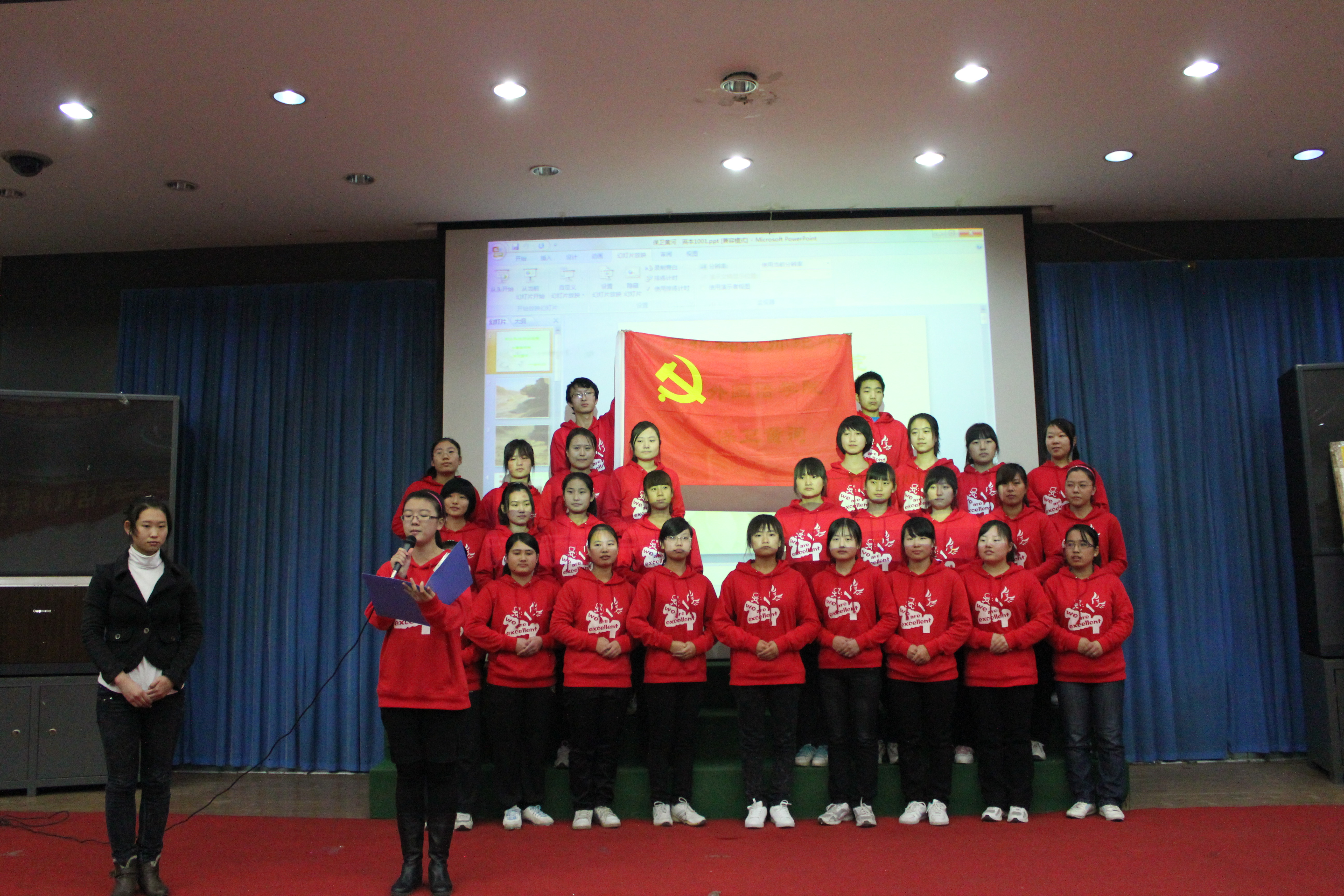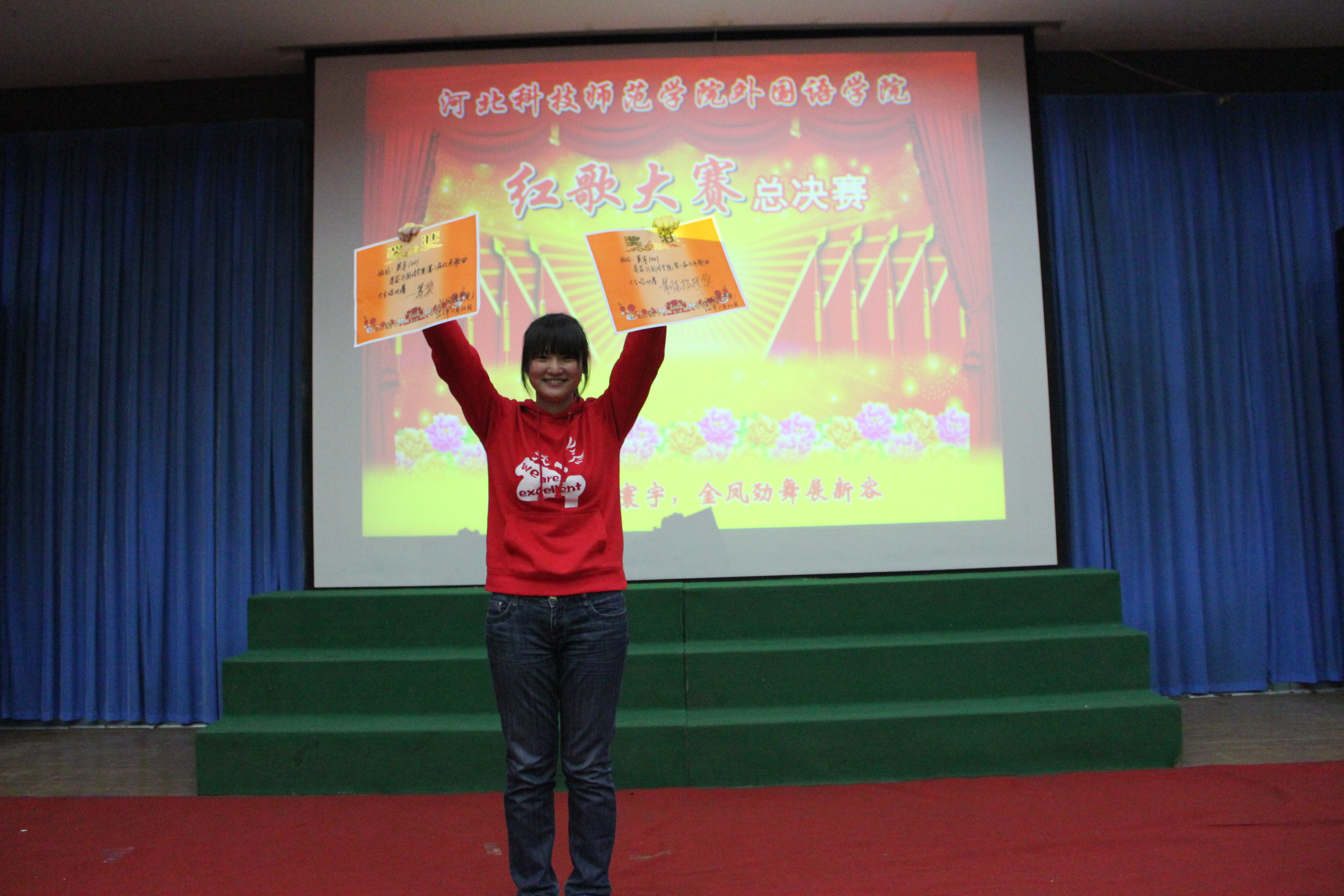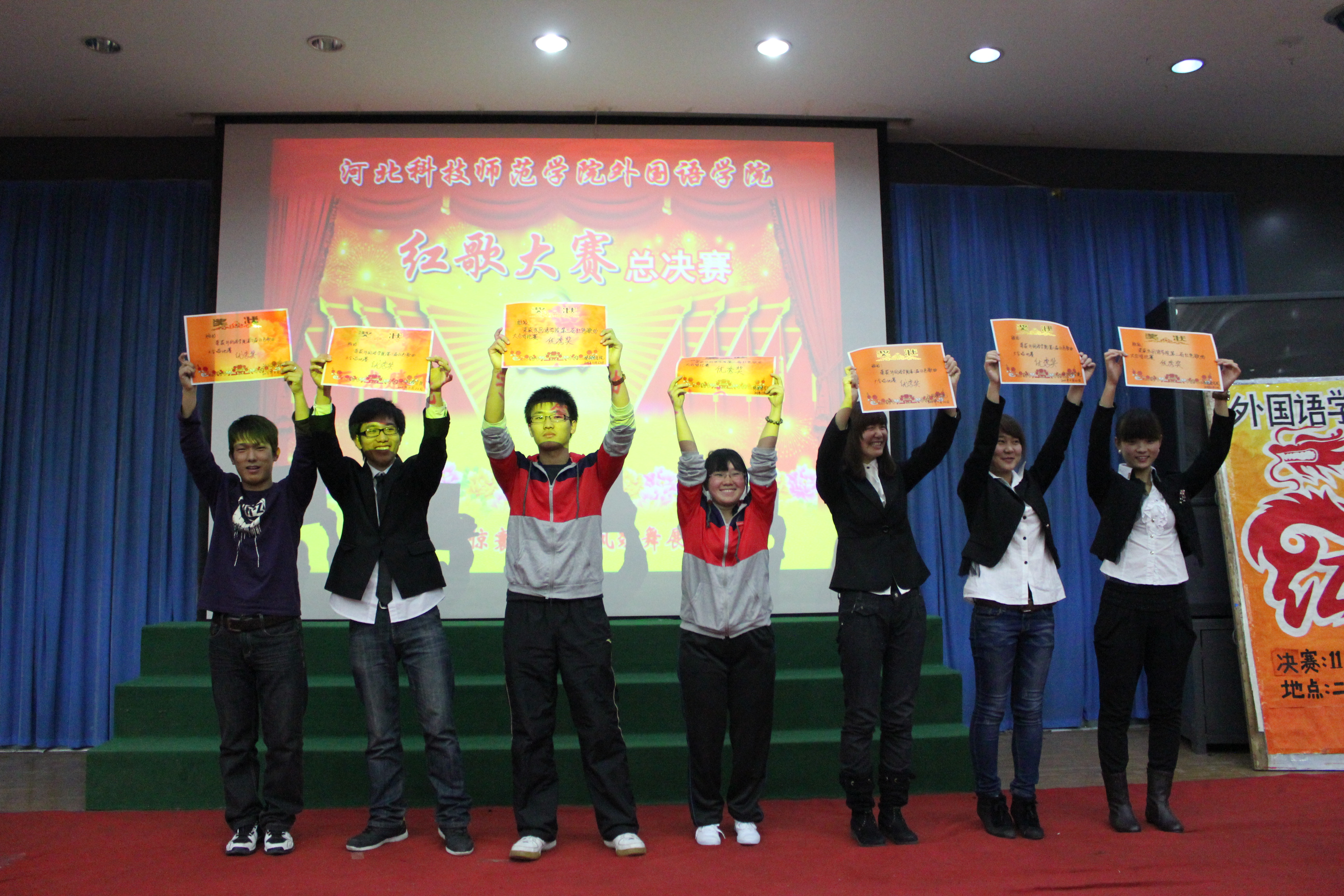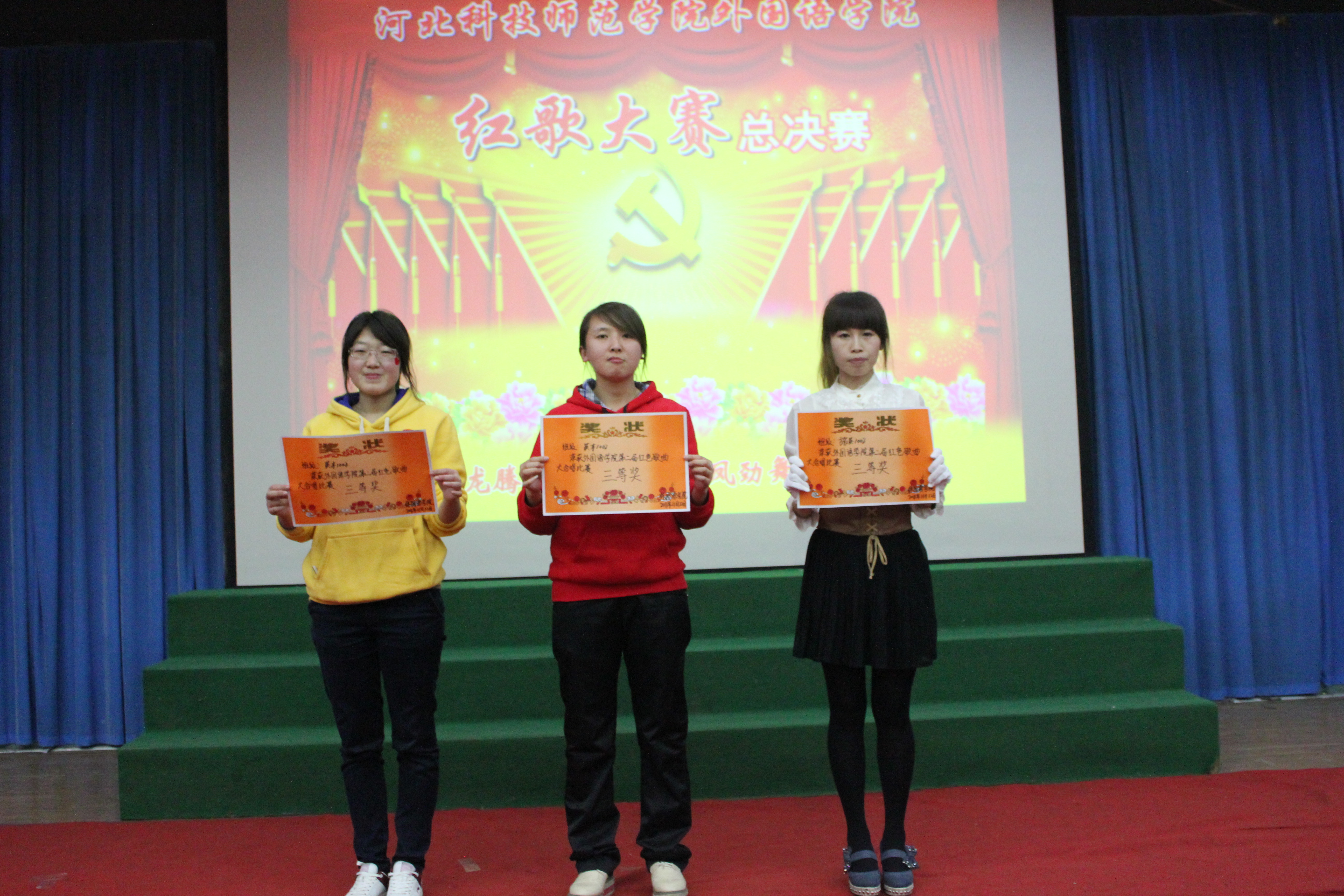为了回顾过去,缅怀先烈,谨记中华民族的光荣历史,河北科技师范学院必赢242net官网于2011年11月22日在综合楼报告厅开展了以“唱红歌,颂祖国”为主题的红色经典歌曲大合唱比赛的决赛。经过初赛的比拼,有13个班级进入了决赛。担任本次比赛的评委有游建民副院长、崔海英副院长,以及办公室、学工办和各教学部的老师们。