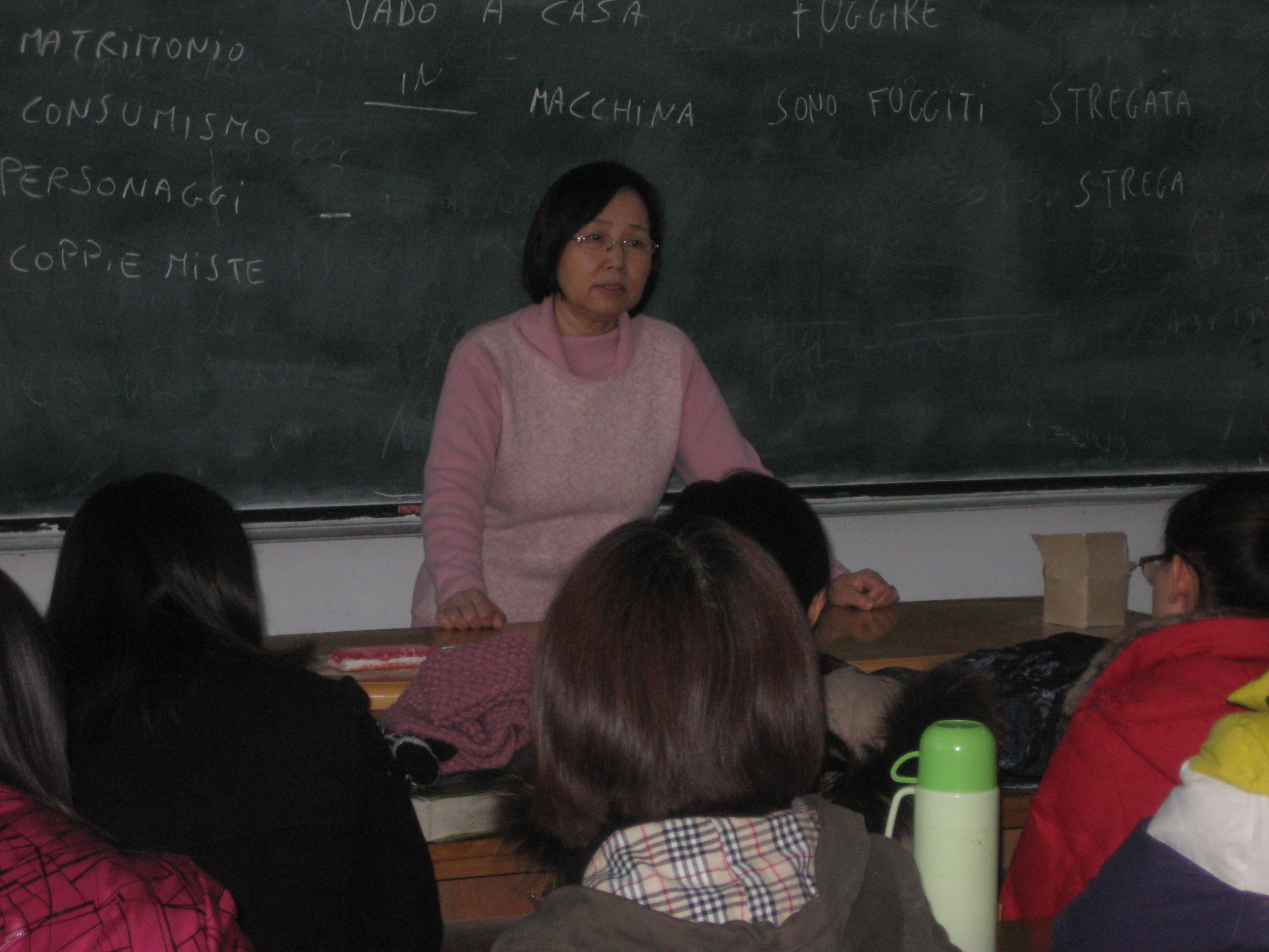 2010年12月28日,必赢官网意大利语学科带头人赵秀英教授来到课堂指导教学工作。从早上8点中开始,赵秀英教授在邵丽君院长的陪同下先后听了必赢官网的三位意大利语教师的课程:马越、马兰老师的10级《基础意大利语》,孙晓萌老师的09级《意大利语听力》;以及三位外籍教师的课程:Alberto的08级《意大利语口语》、Luca的09级《意大利语口语》和Stefano的08级《高级意大利语》。赵教授分别对六个听课班级的课堂教学情况进行了精彩的现场点评。从意大利语的发音规律到意大利语语法、再到中意语言文化的对比,赵教授风趣幽默的点评受到了学生的普遍欢迎。她对必赢官网意大利语学科建设提出的意见和建议也使年轻教师们也受益匪浅。
