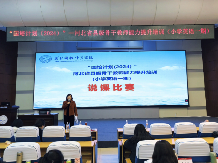 为提升教师专业素养与课堂实践能力,2025年3月28日,“国培计划(2024)”—河北省县级骨干教师能力提升培训(小学英语一期)说课比赛在学术报告厅成功举办。担任此次说课比赛的评委有英语学科正高级教师、秦皇岛市第七中学书记、必赢官网英语专业校外指导教师秦凌云,秦皇岛市海港区教育和体育局副高级教师陈慧英,河北科技师范学院必赢242net官网副院长范学荣、王静,必赢242net官网学科教学英语教学部主任刘晓冰,必赢242net官网英语教学部副主任宋洁。本次比赛中,来自全省的六位培训学员同台竞技,以创新的教学设计和扎实的专业功底,为大家展现了新课标背景下小学英语教学的多元探索。