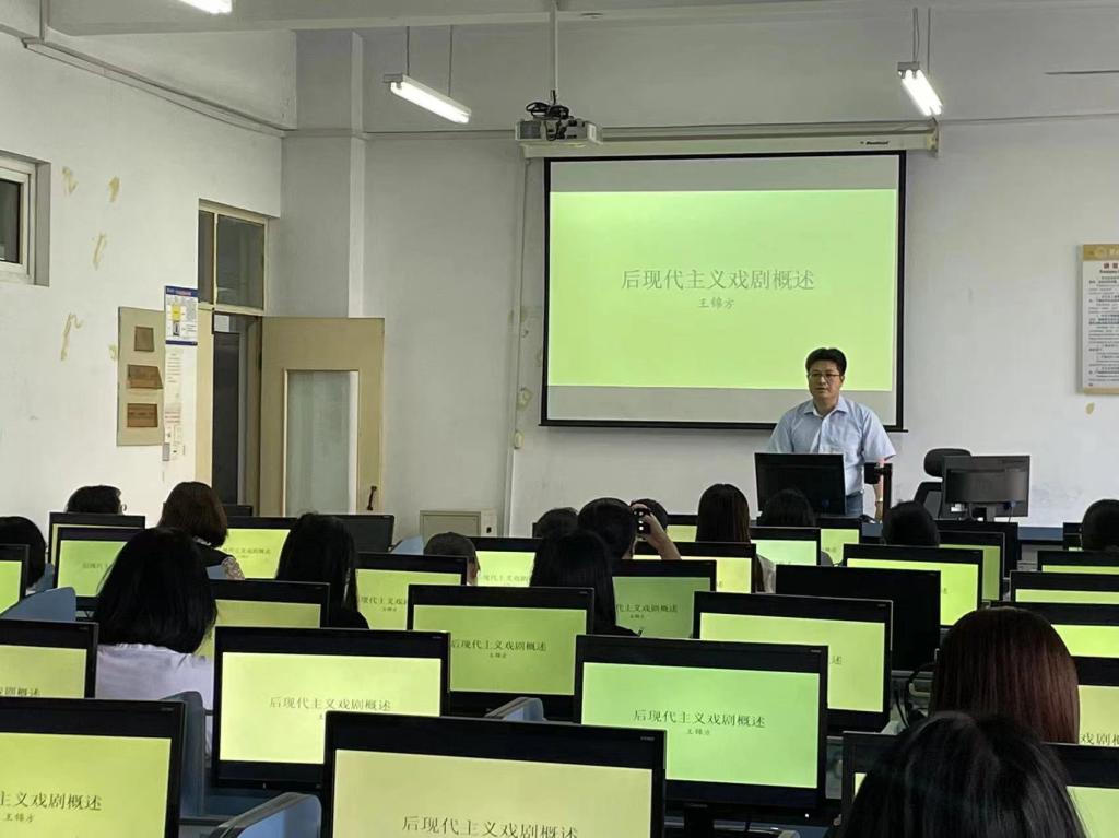 2024年5月30日必赢242net官网邀请王锦方博士主讲题目为《后现代主义戏剧概述》的学术报告。外语学院英本教学部教师、学科教学(英语)教学部教师及硕士研究生、对英美文学感兴趣的教师参加了此次报告。