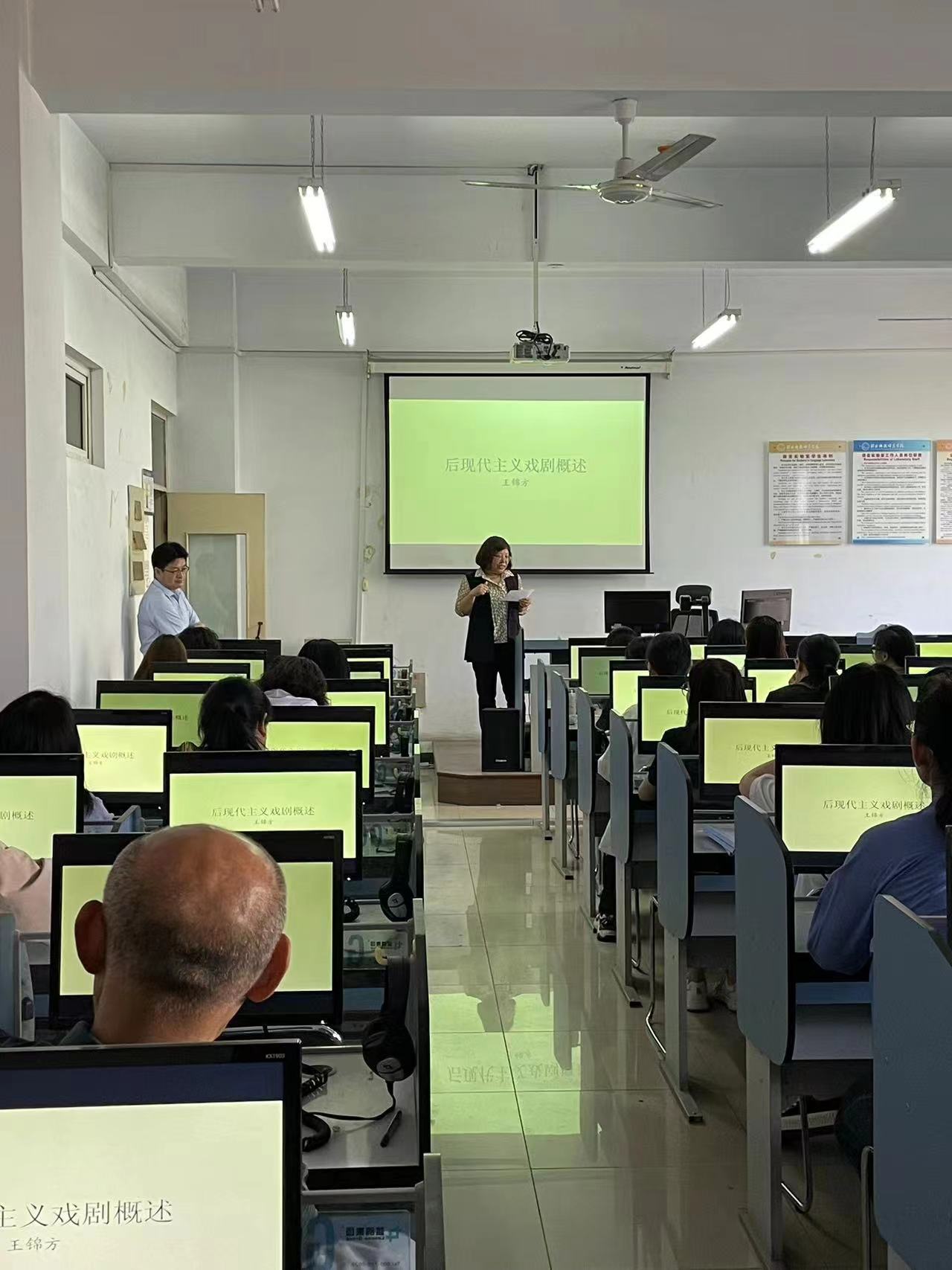 王博士从后现代主义戏剧的产生背景开始介绍,进行相关文献的回顾并凝练其特征,最后谈到后现代主义戏剧的教学与科研。